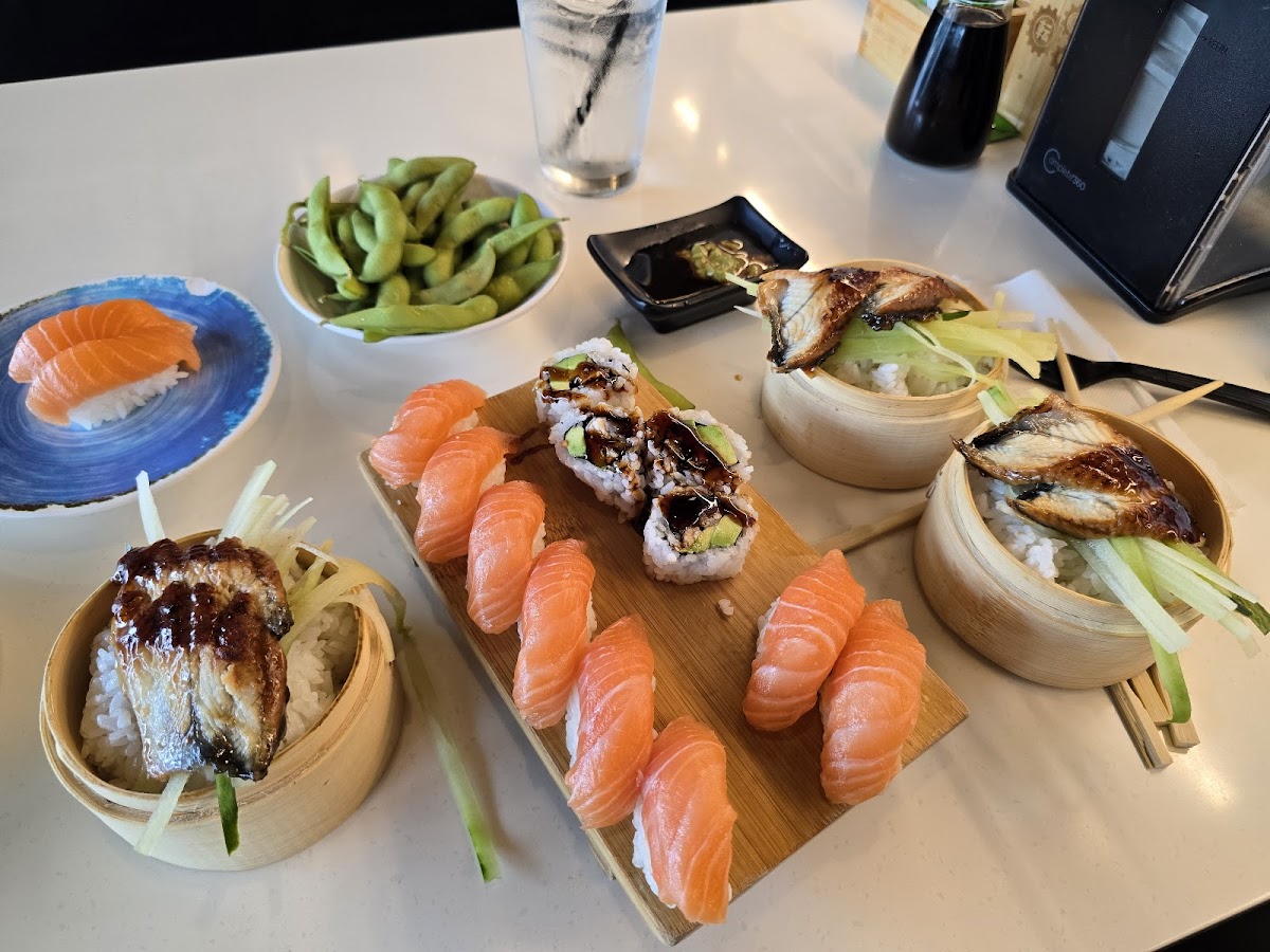 Today’s new visit I gave this place another try and it was worth it. While there are plenty of sushi buffets in town, I come here for the eel. Their eel sushi and eel rice box are of nice quality. That said, they still put way too much rice on everything. Service has improved a lot though—the food ordered from the table now comes out very quickly. On the downside, the conveyor belt isn’t being refilled often. I waited through three rounds and some plates were still empty. I also asked if they could remove the eel sauce from my order, and the server said yes, but it still came with sauce. So, don’t expect much customization.! Previously I was excited to try this place, but here’s my honest review: 1. Price A review from weeks ago mentioned lunch was $17.99, but during my visit, it had increased to $19.99. I couldn’t find any updated pricing on their website or Instagram, which was disappointing. 2. Service The server was kind, but instead of clearing all the empty dishes at once, she only picked up a few at a time. 3. Food Quality The food itself was good, but they put way too much rice on everything, making it overly filling. Again, too much rice!! 4. Selection The biggest reason I gave 3 stars is the limited variety beyond sushi and rolls. While those options were solid, there weren’t many appetizers or other dishes. For instance, they only offered miso soup, and for salads, just Kani salad and seaweed salad. I wish there were more diverse options available. In addition, there are extra charges for ramen and udon, so the side dish options are extremely limited.