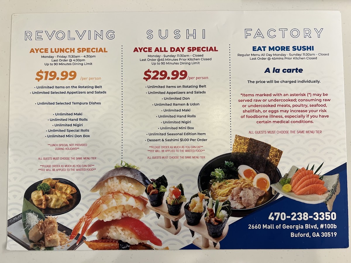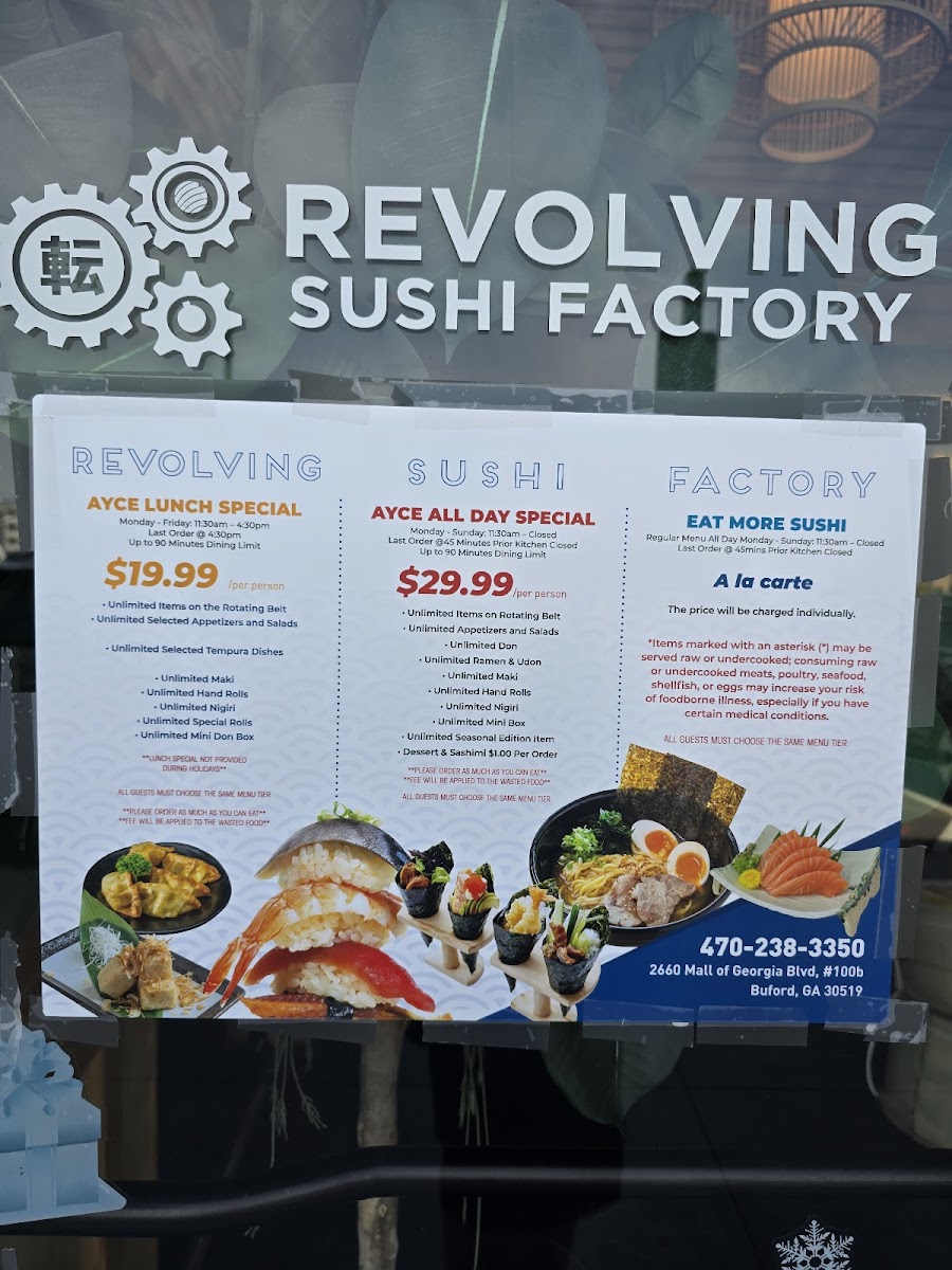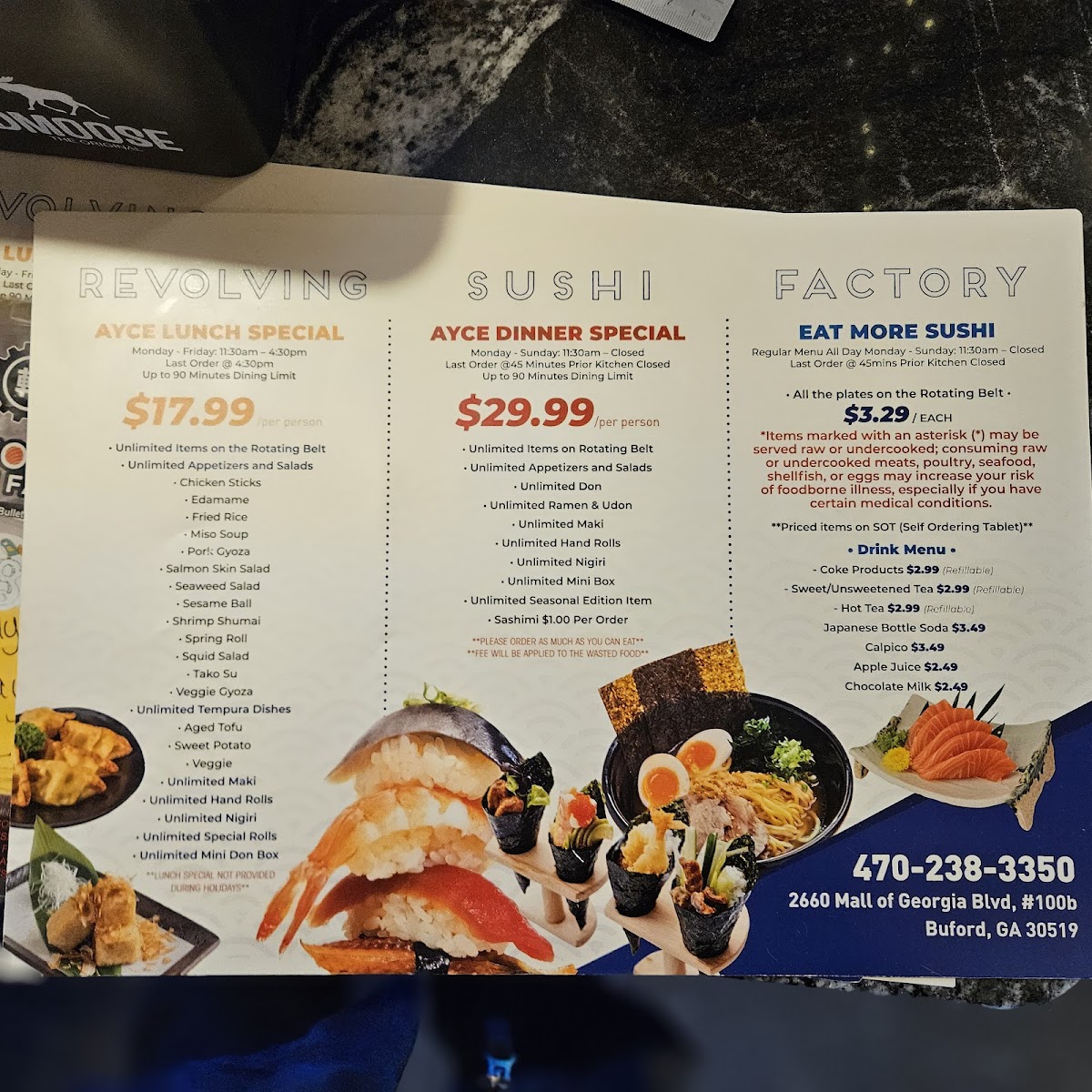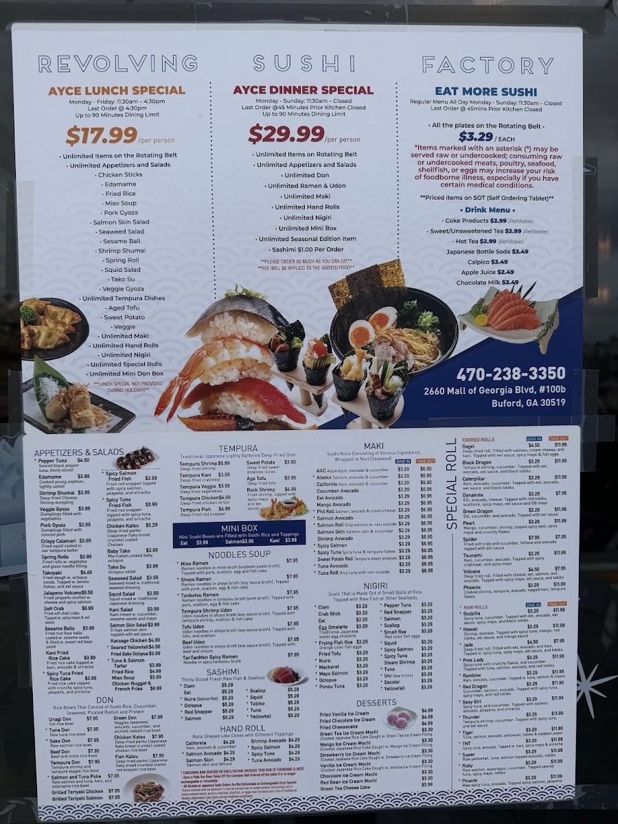 The menu at Revolving Sushi Factory offers a relaxed and inviting selection of Japanese dishes designed for casual dining and shared experiences. Guests can enjoy a variety of fresh sushi options served both from the signature conveyor belt and made-to-order, along with comforting appetizers like miso soup and tempura. Sweet treats such as fried ice cream and green tea mochi provide a gentle finish to the meal.